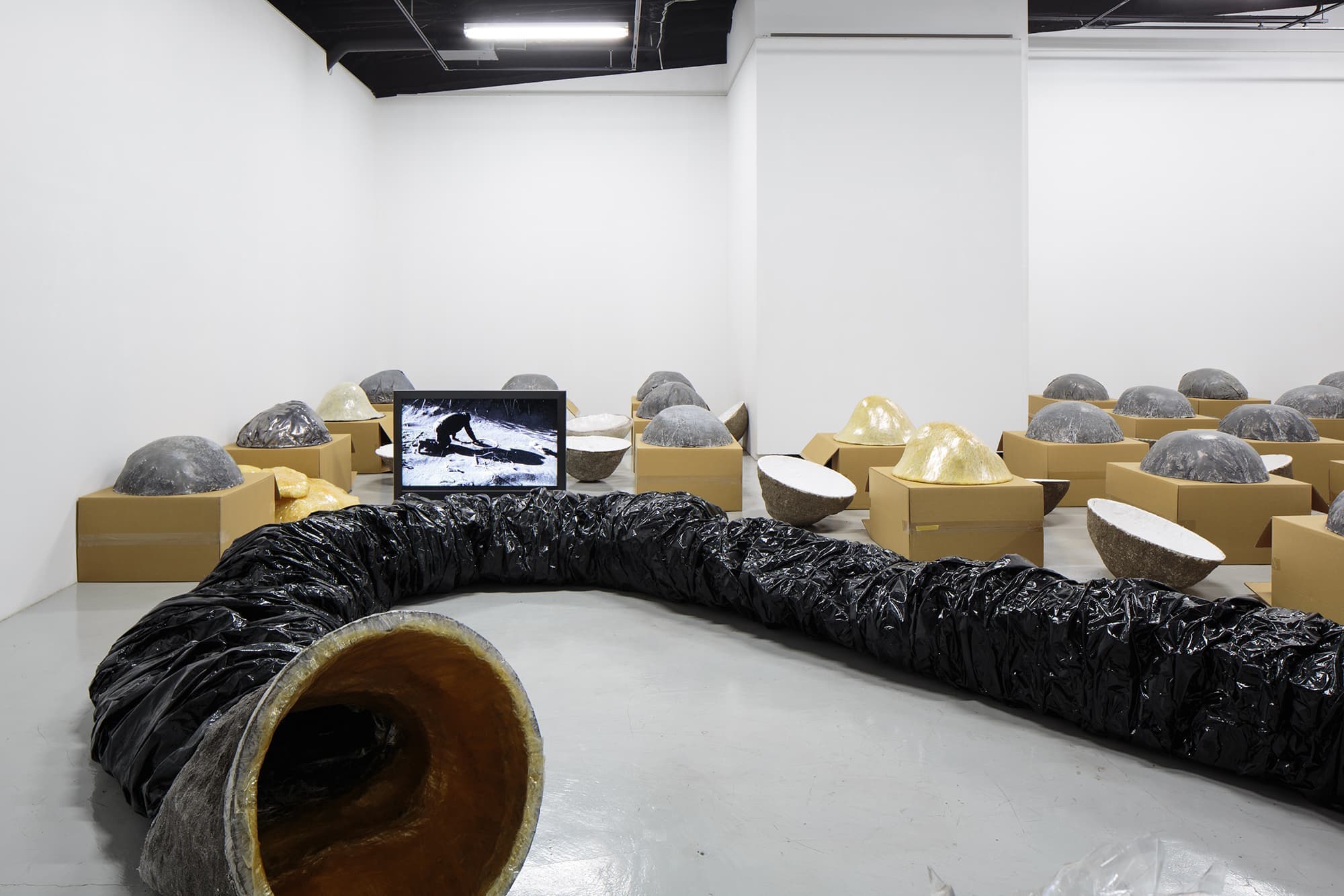 鉛・石膏・段ボール・土・ビニールシート・映像など