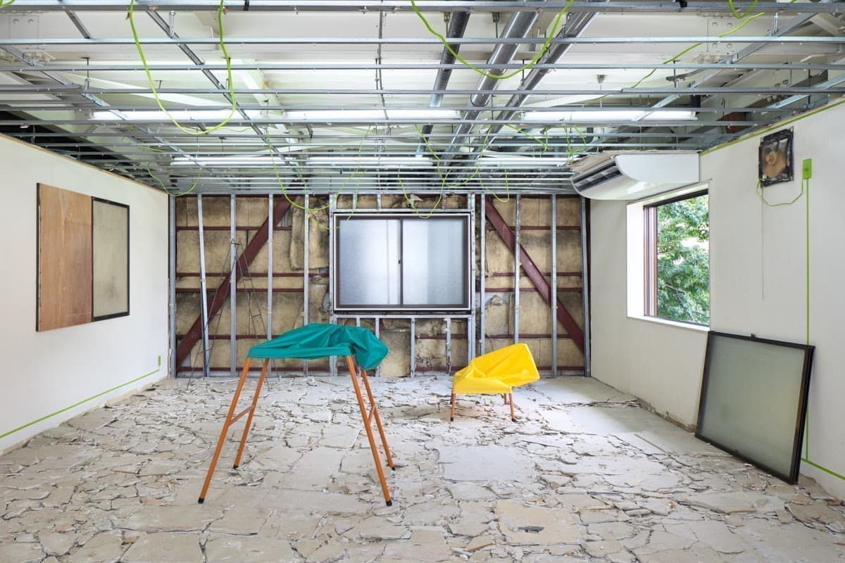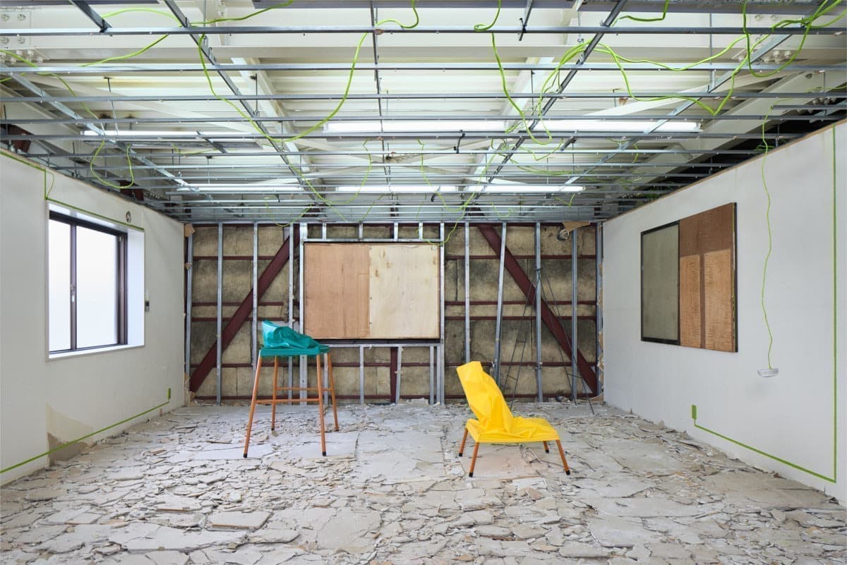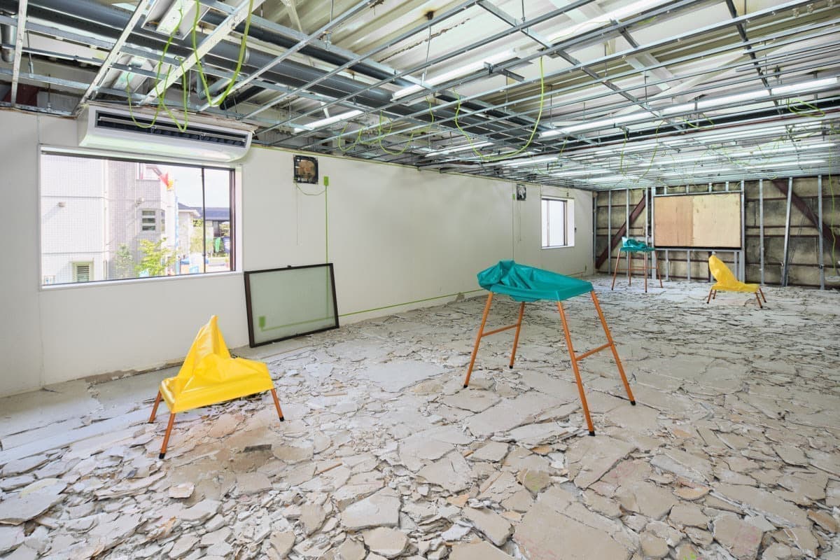 バーミヤンの石仏は面(おもて)を破壊されることによって礼拝対象から鑑賞対象へと変化したのでしょうか。そもそも偶像破壊によって露呈する偶像の中身とは何でしょうか。この建物は取り壊しが決まっていますが、まだ取り壊されていない未然の場所です。建物の外壁は開口部で内壁へとうらがえされて続いていますが、「うら」は「なか」ではありません。このプロジェクトは対象化されていないということを対象化しようとする試みで、表をたどって裏へとむかい、表と裏とを行き来しながら、そうだったかもしれない、その続きへと延長していくことによって、その中へと分け入ろうしています。