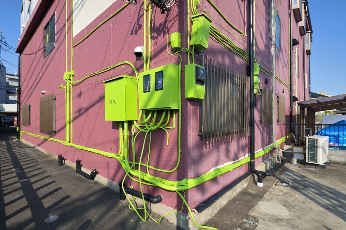 (緑色のペンキ、脚立、シート、写真など)