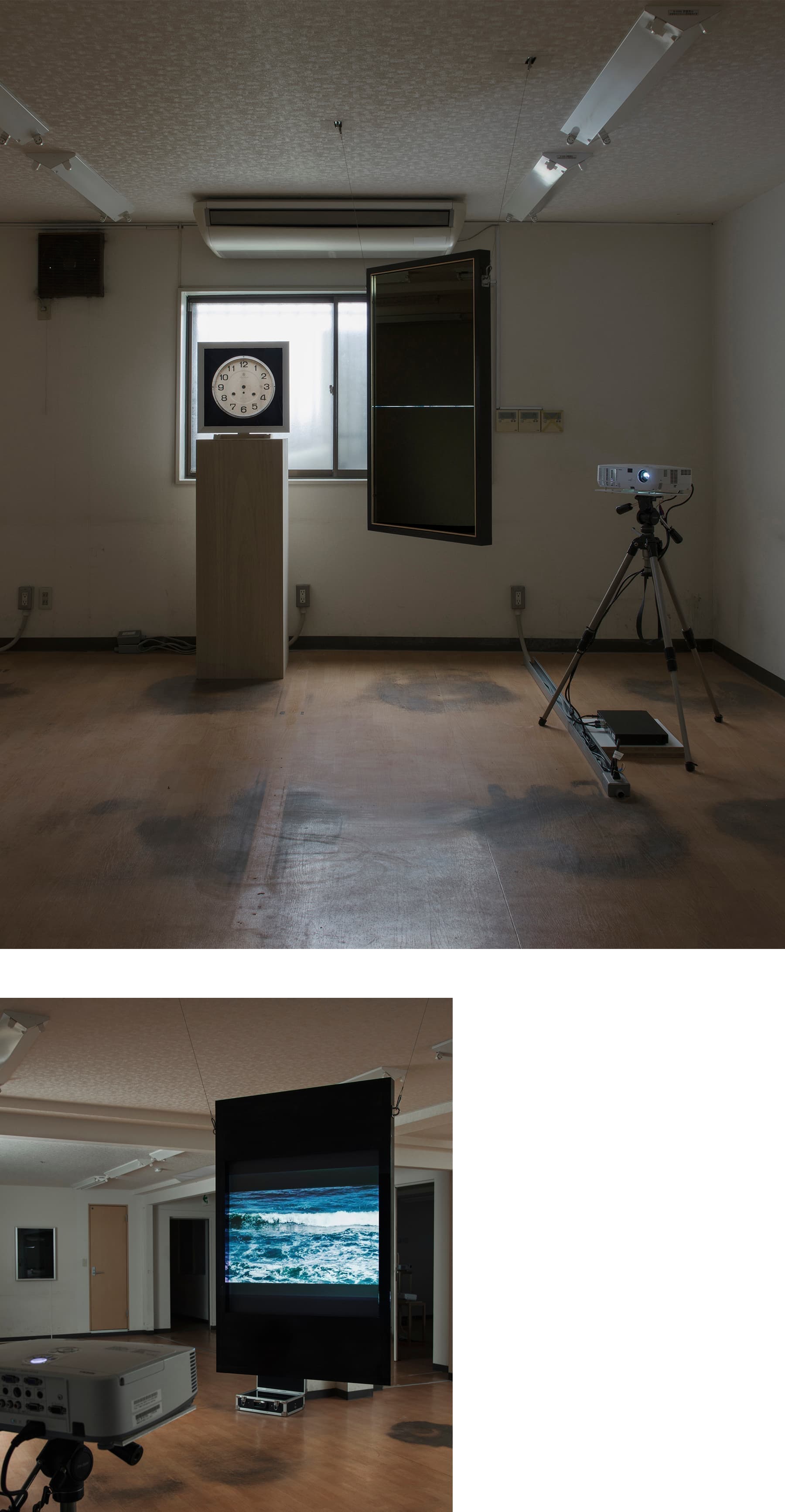 鏡の背後から投影しているのは、幼少期の思い出にある勿来海岸を撮影した映像。