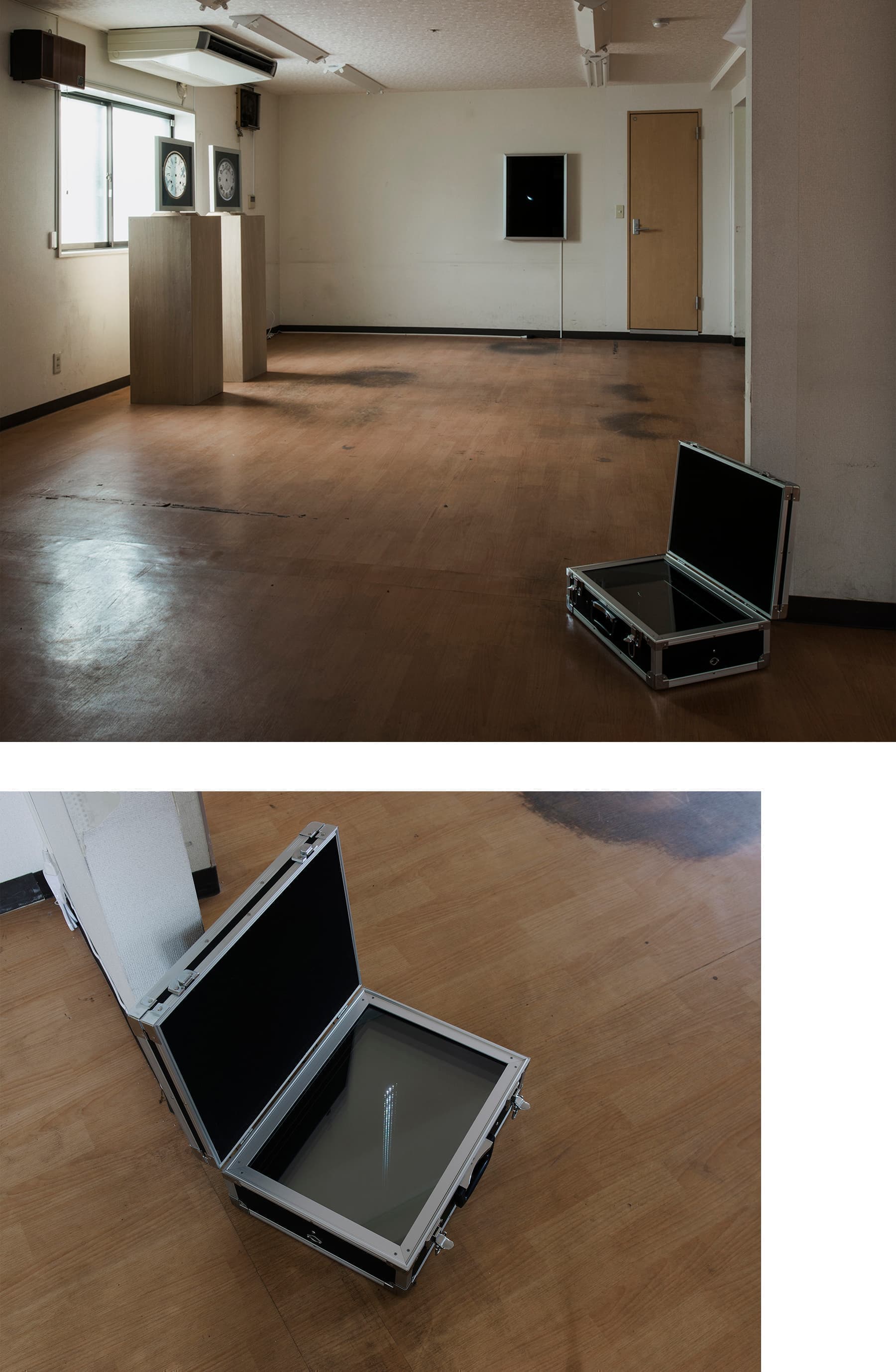 経年劣化による時の現れは、会場の北斗ビルの空間の至る所にも顕在し、窓から差し込む光に照らされている。