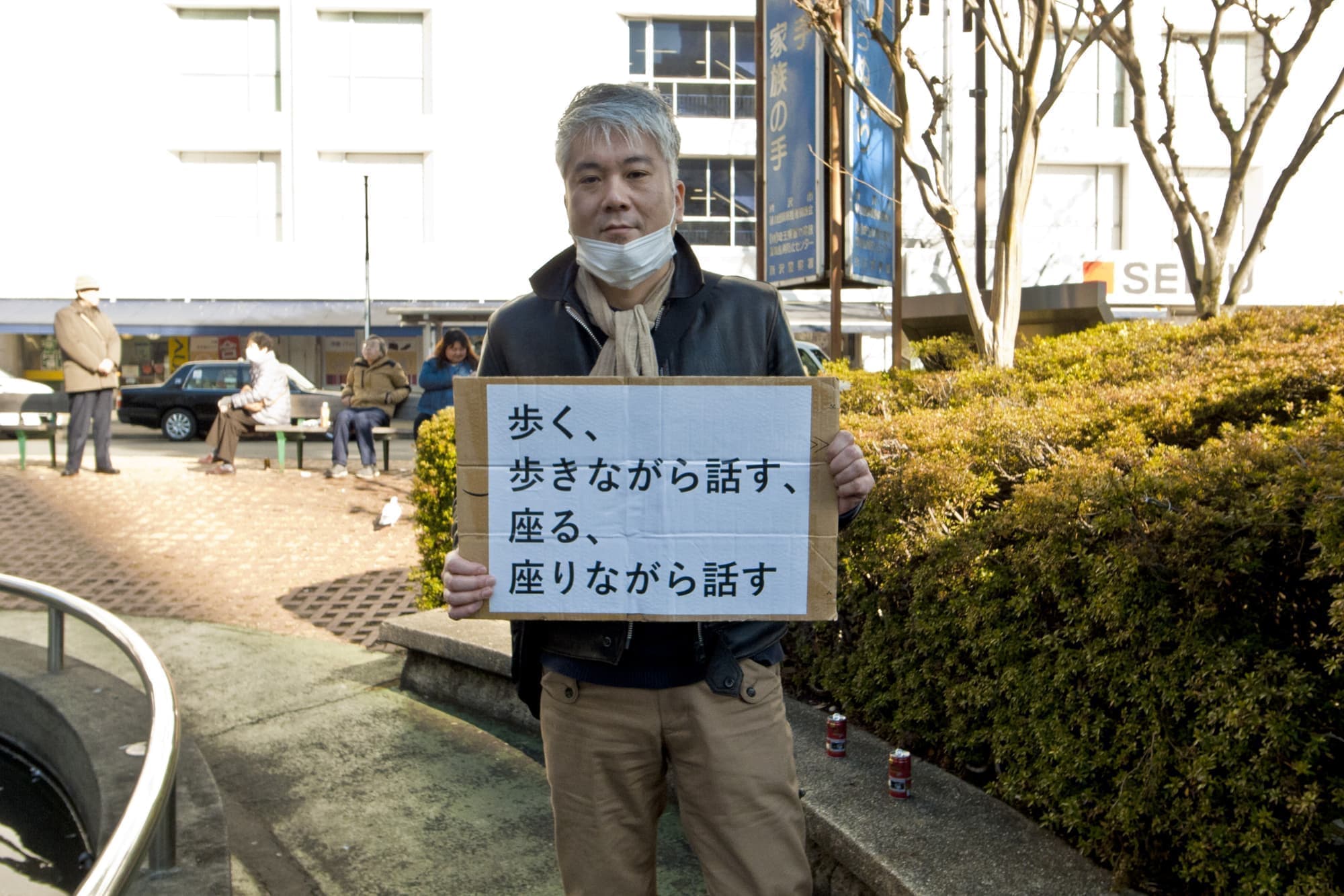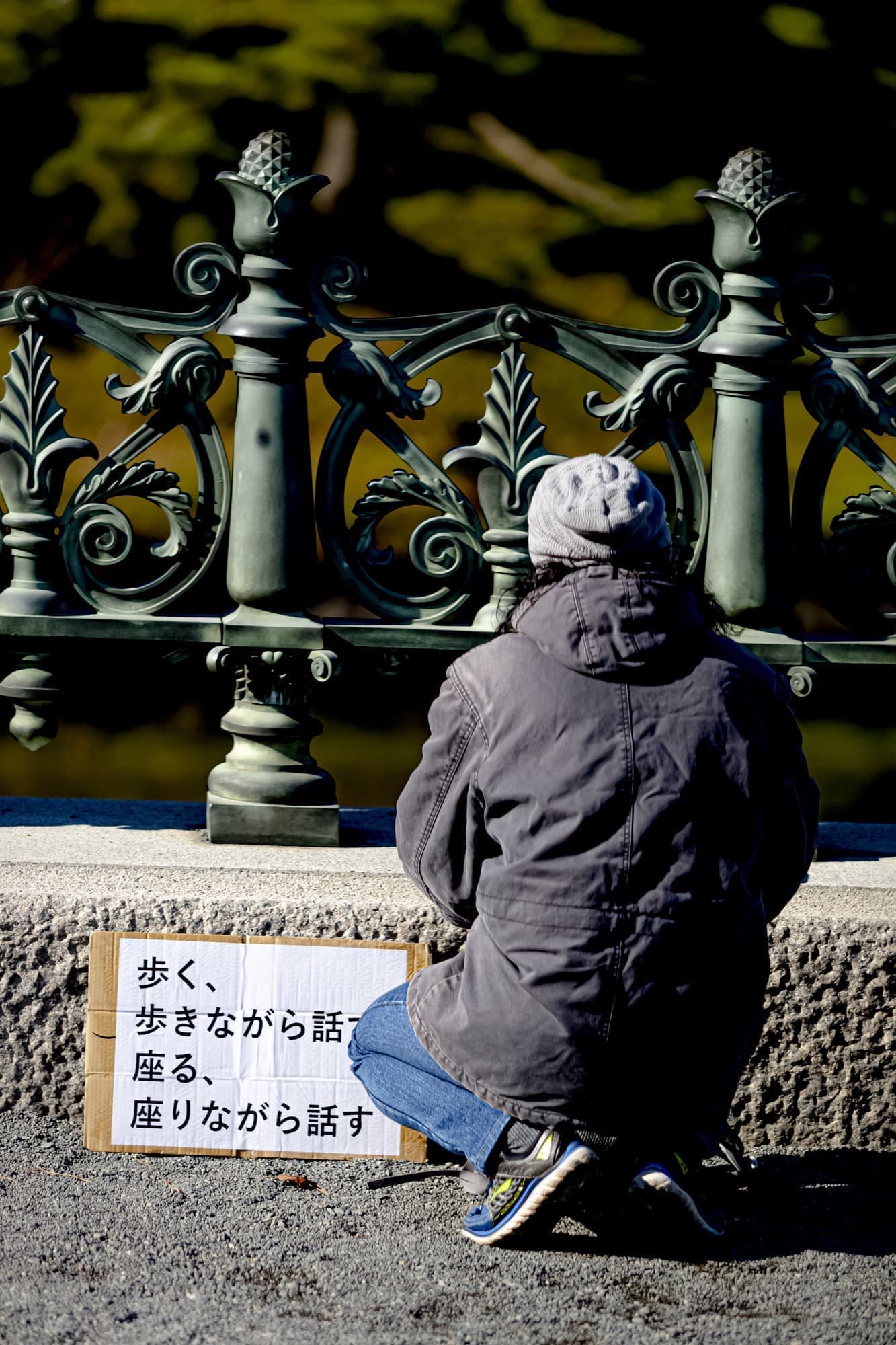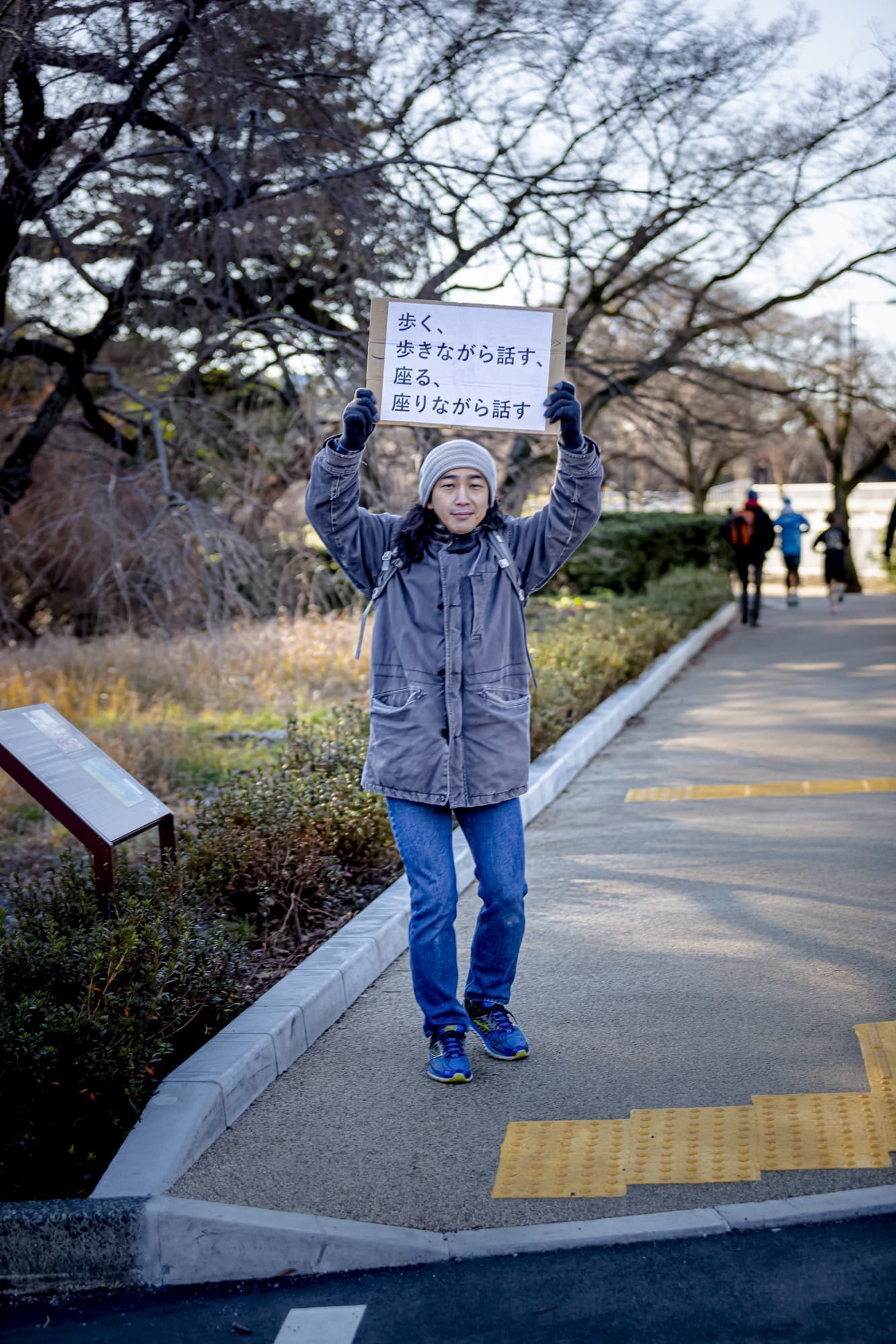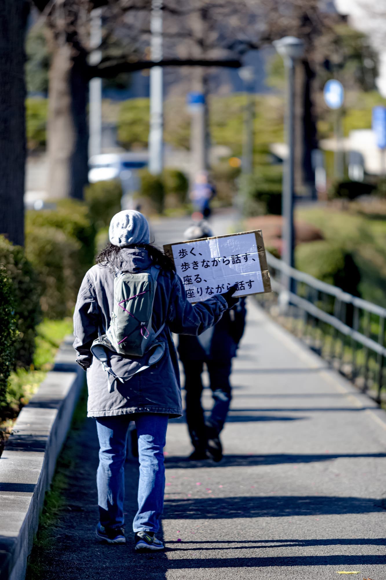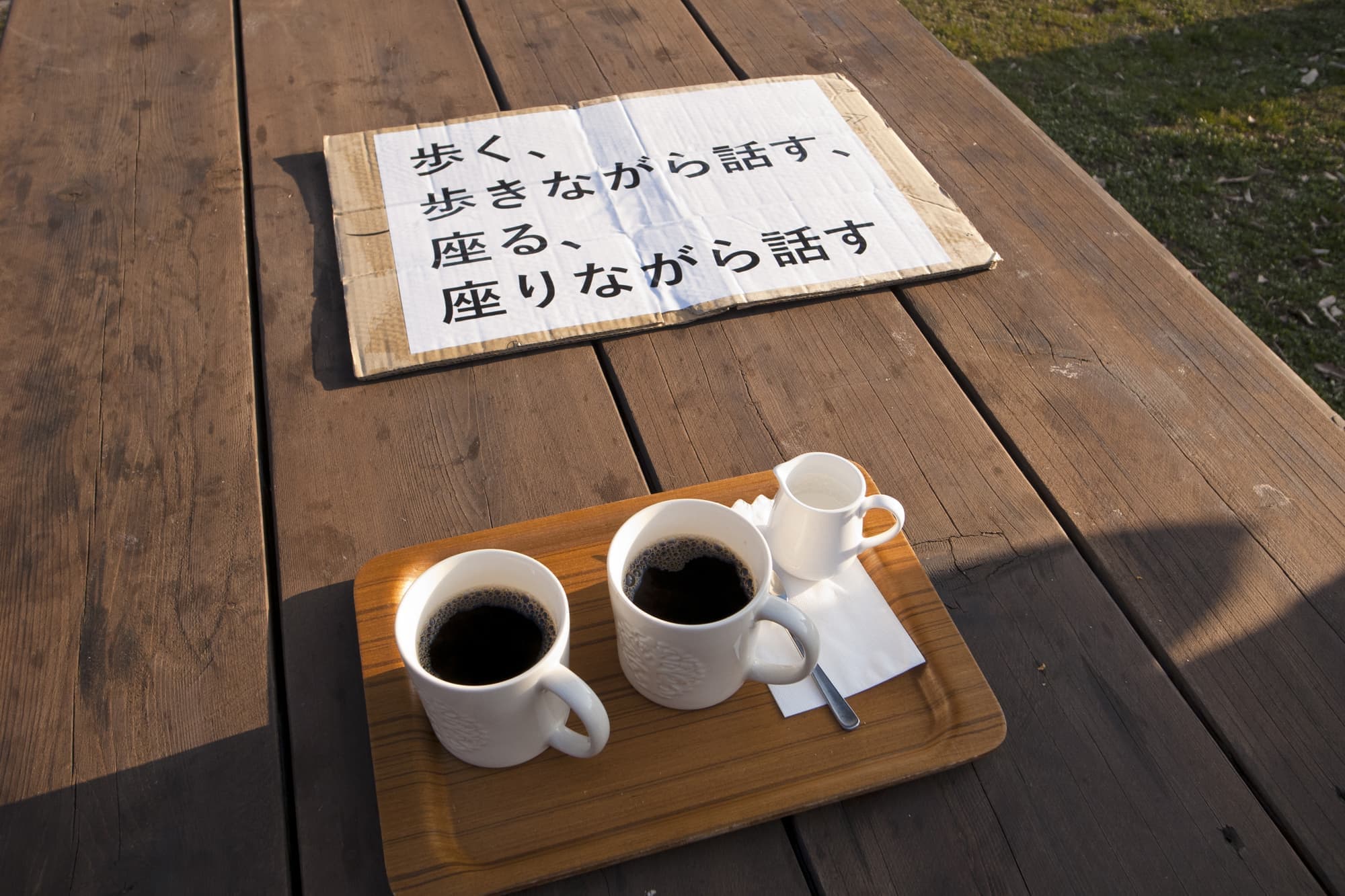 「歩く、歩きながら話す、座る、座りながら話す」