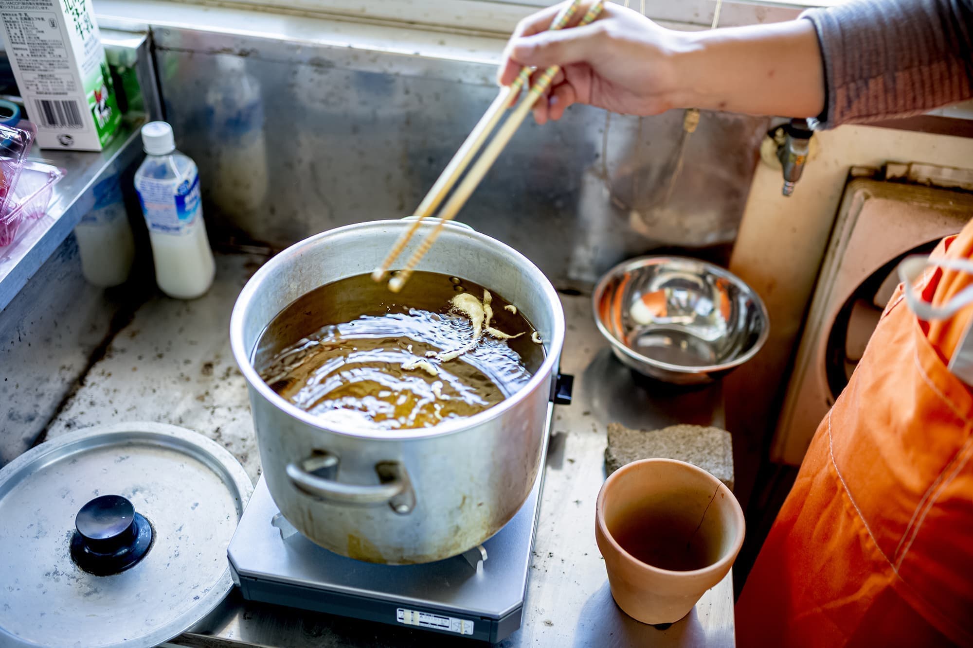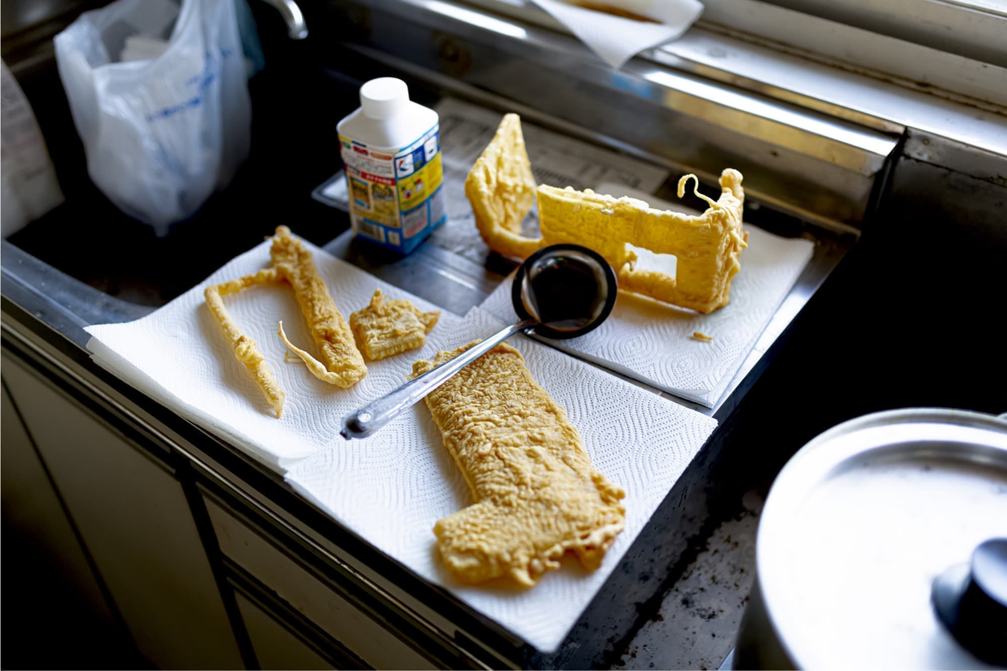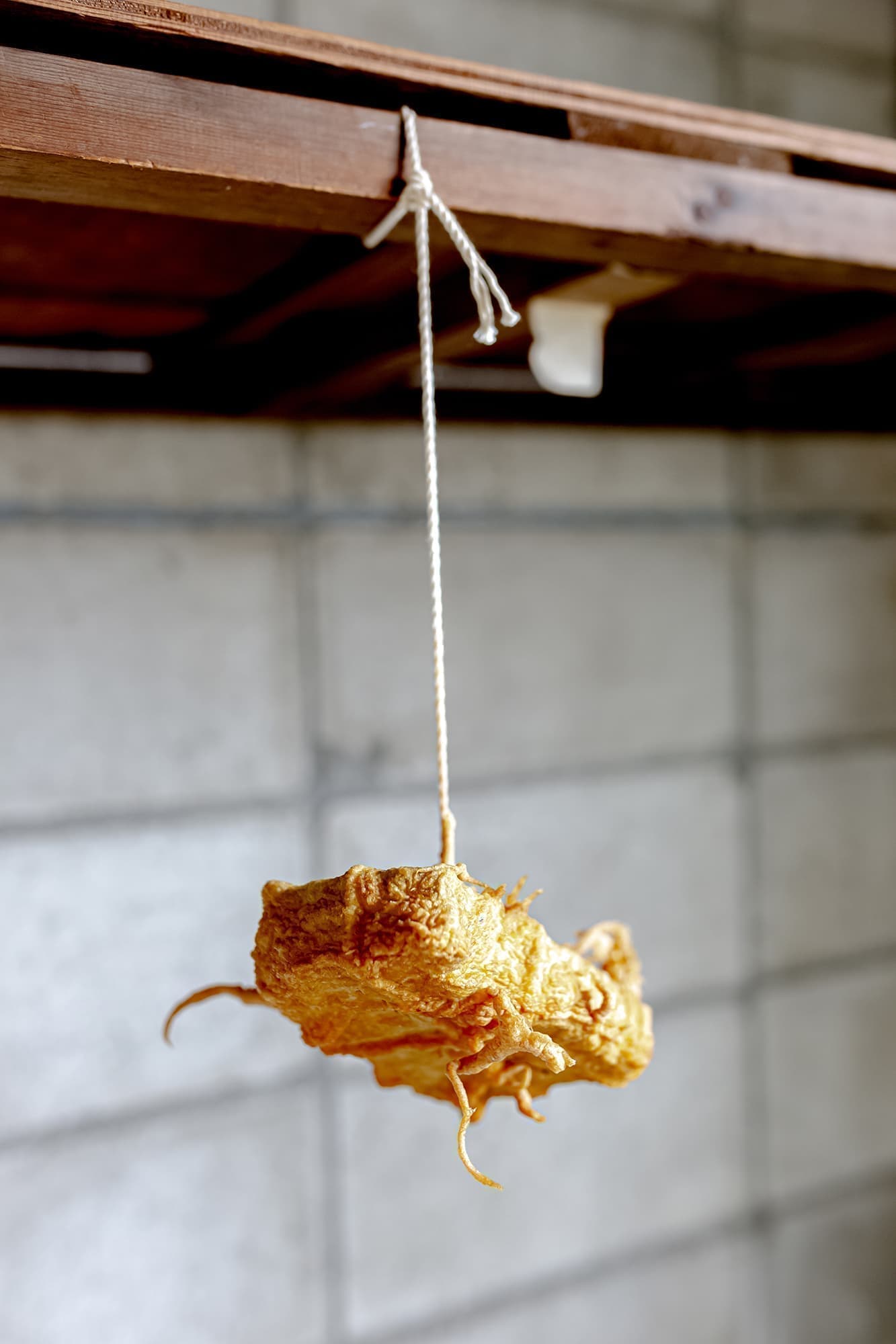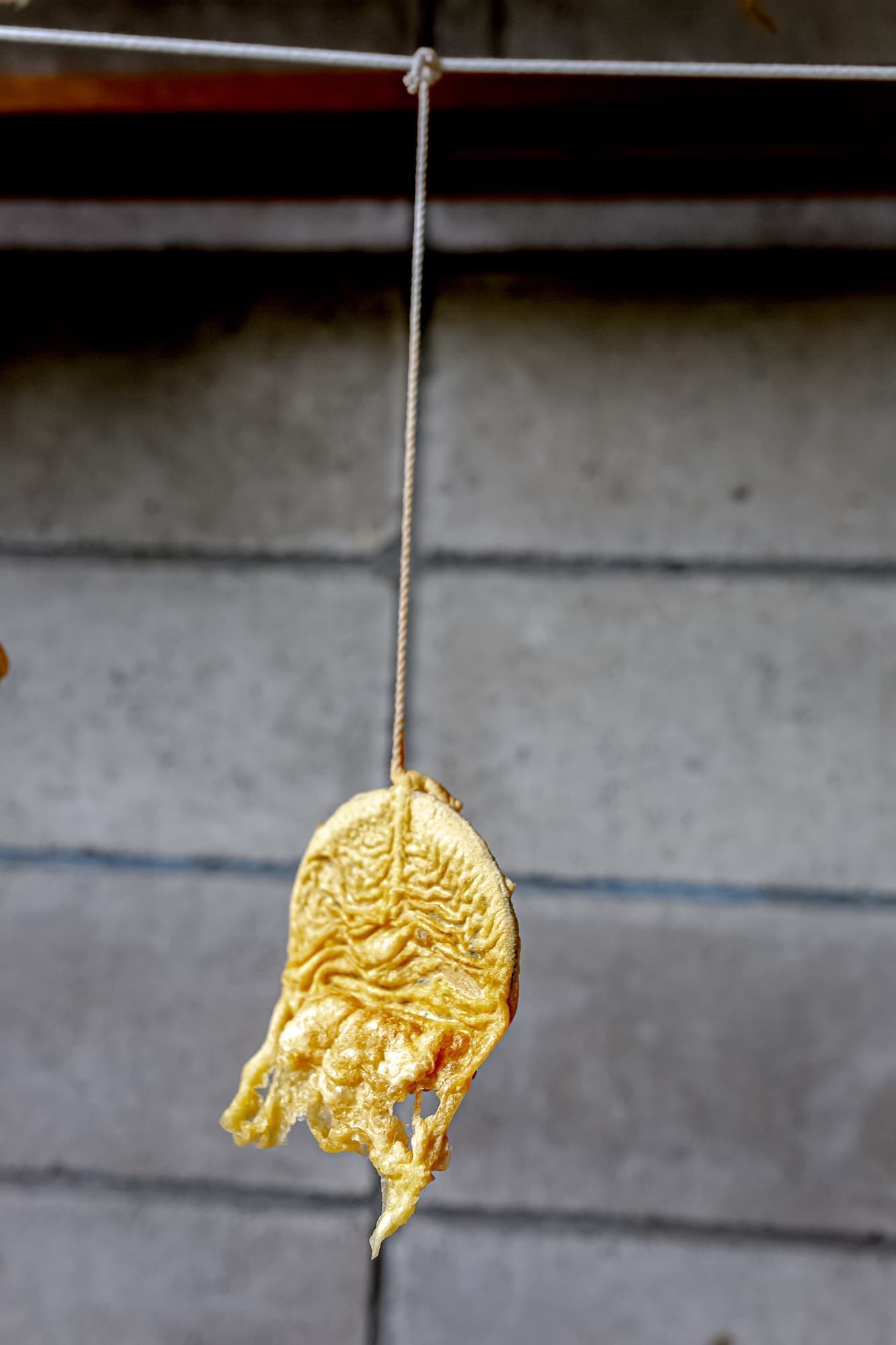 来場者からさまざまなものを提供してもらい、「天ぷら」状の衣(小麦粉、卵、牛乳を混ぜたもの)をつけて食用油で揚げる、クイック&オートマチック&アンフォルムな「彫刻」の公開制作。「天ぷら」にして欲しいものをお持ちください。