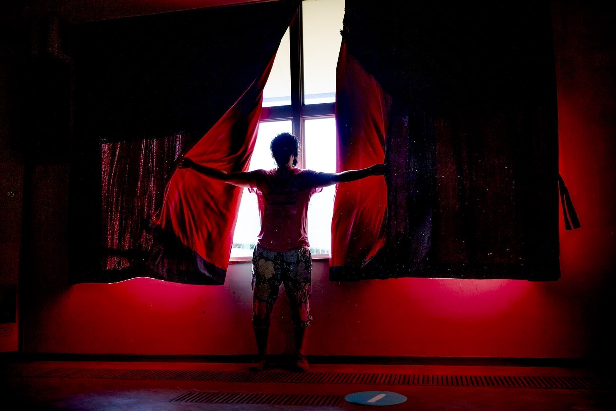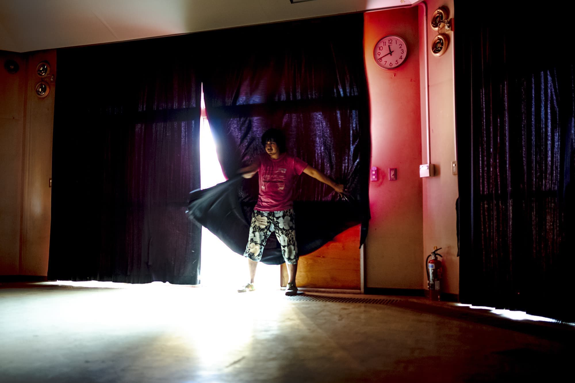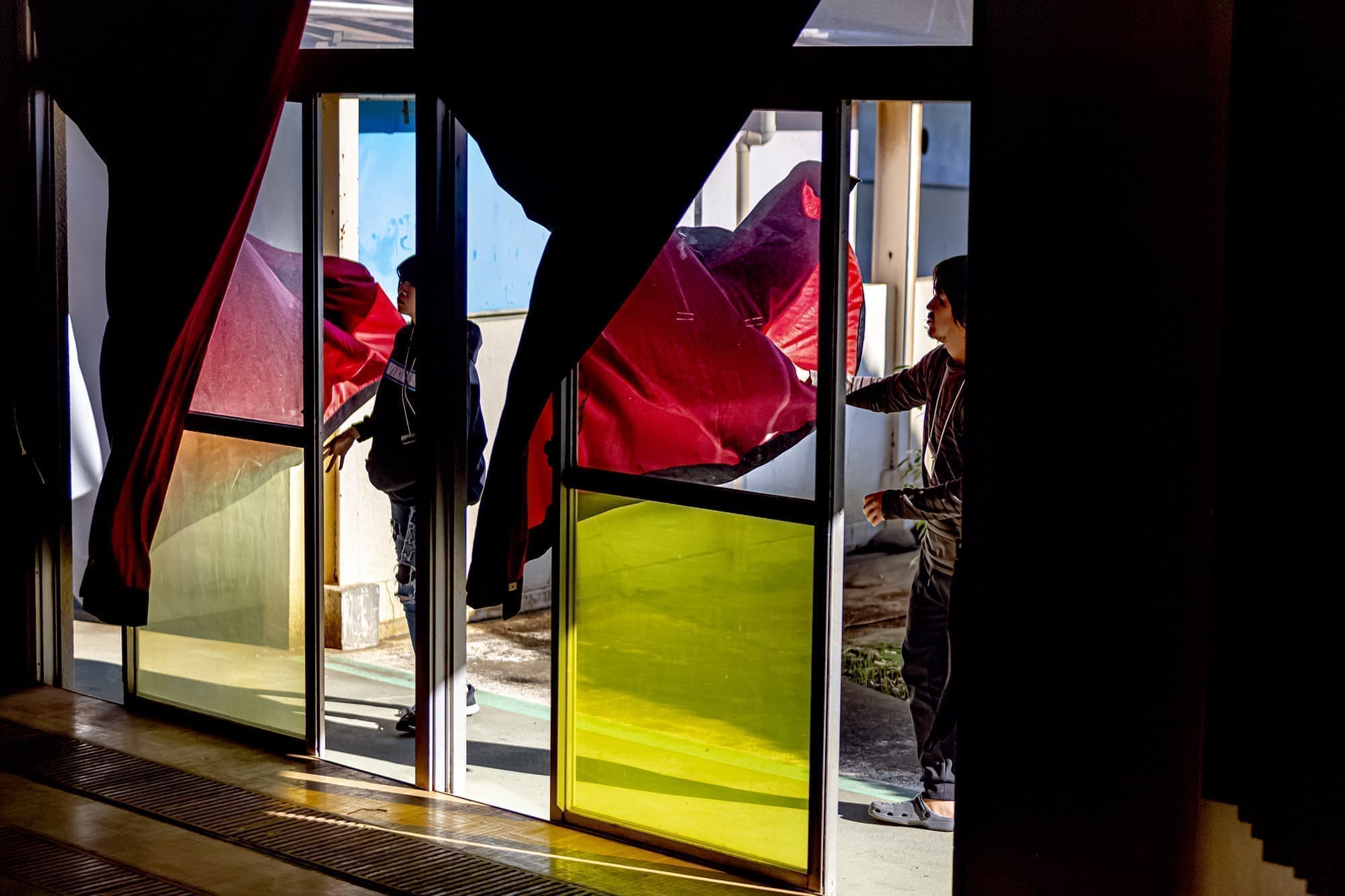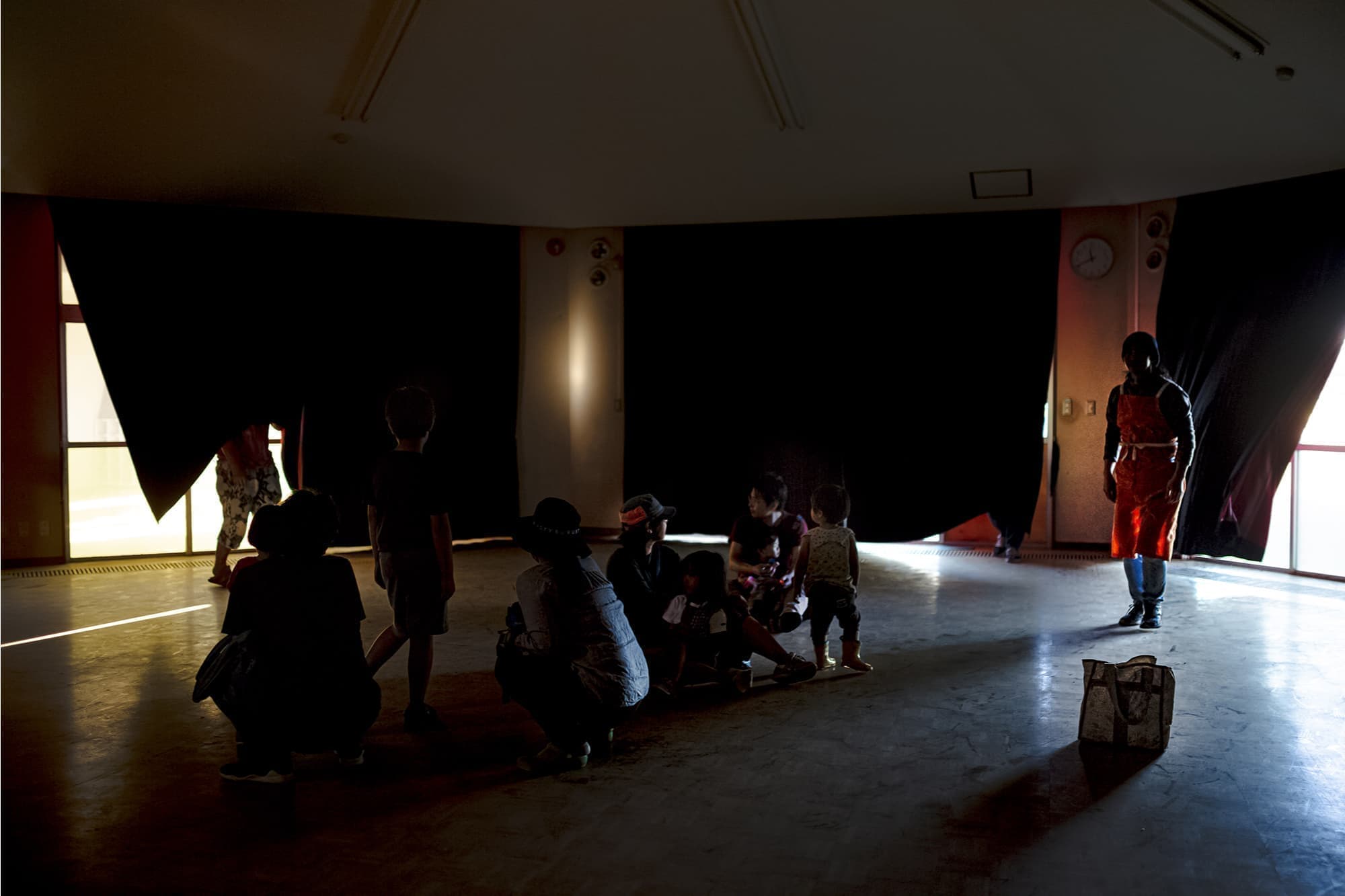 この度「旧市立所沢幼稚園照明係」を組織し、電気の通わない旧幼稚園会場の講堂にて、暗幕カーテンを使った採光パフォーマンスを上映します。
