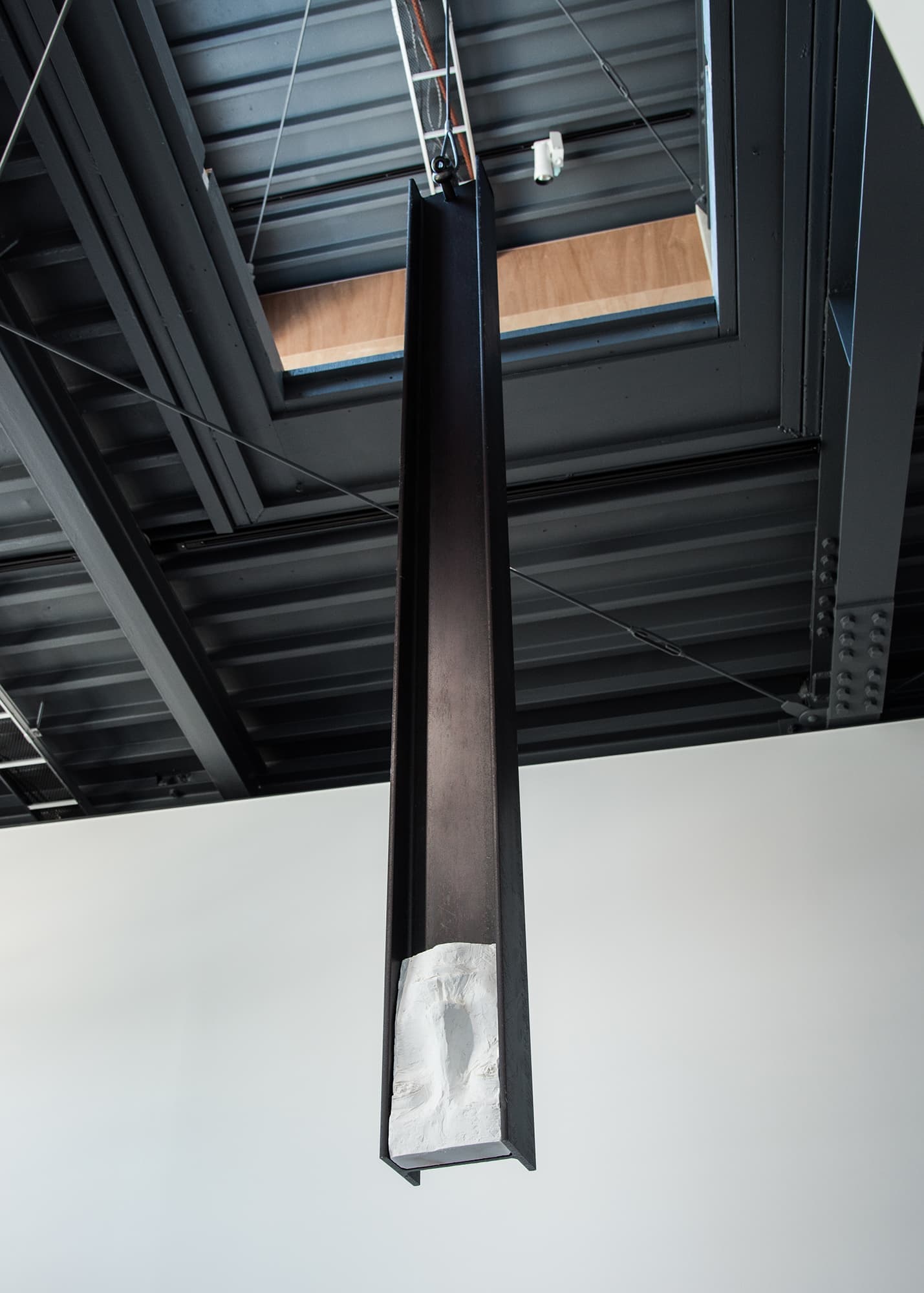 《カオリ#4》鉄・石膏・シャックル・ワイヤー、310×14.8×11.5cm、2019年、撮影:柳場大